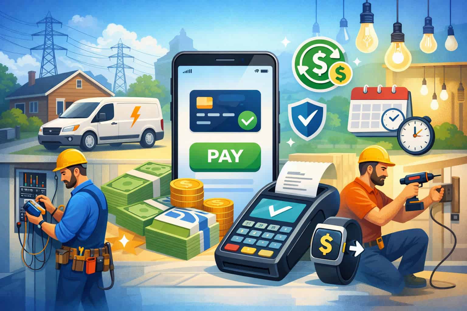 Same-day payment solutions for electrical services are payment tools and processing options that help businesses collect customer payments quickly and access funds faster than traditional billing methods.